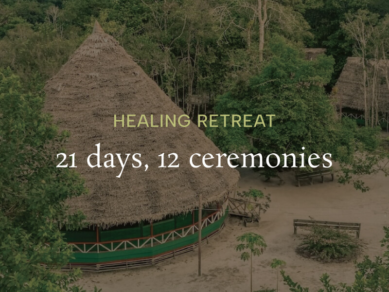 Our Healing Retreat (14 days) includes an 21-day stay at our center and 12 ayahuasca ceremonies. This retreat length is perfect for working on your goals and lightening the spiritual load you carry. This retreat includes a Master Plant diet.